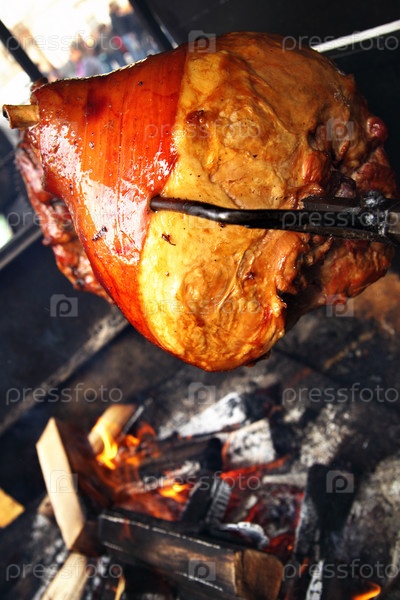 Жареная нога поросенка на вертеле