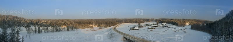Зимний пейзаж с деревней на окраине леса