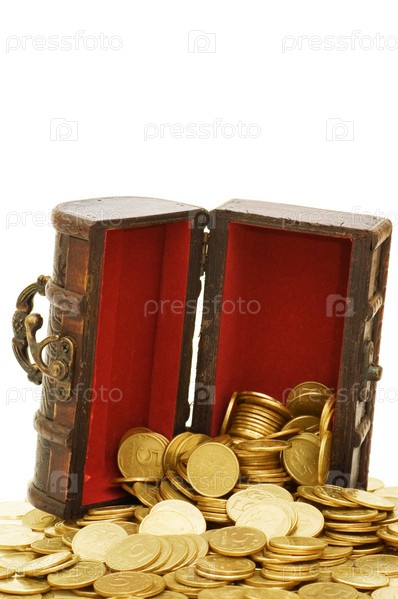 Деревянная шкатулка с монетами