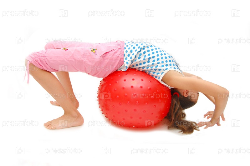 Девочка делает упражнения с мячом