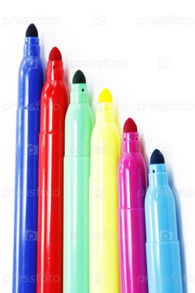 Разноцветные фломастеры на белом фоне