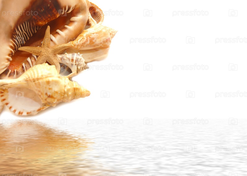 Различные ракушки на белом фоне