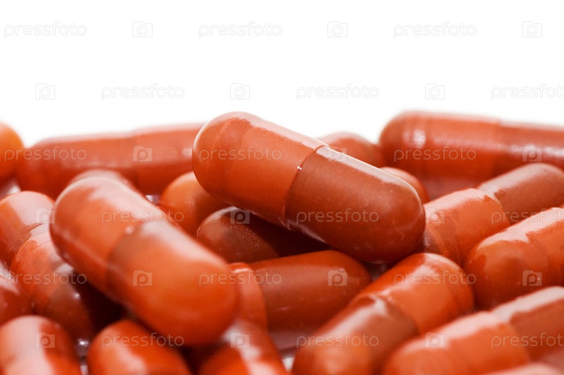Оранжевые капсулы на белом фоне
