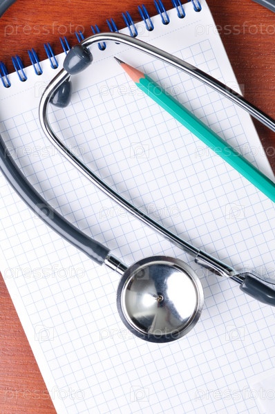 Стетоскоп и карандаш на блокноте