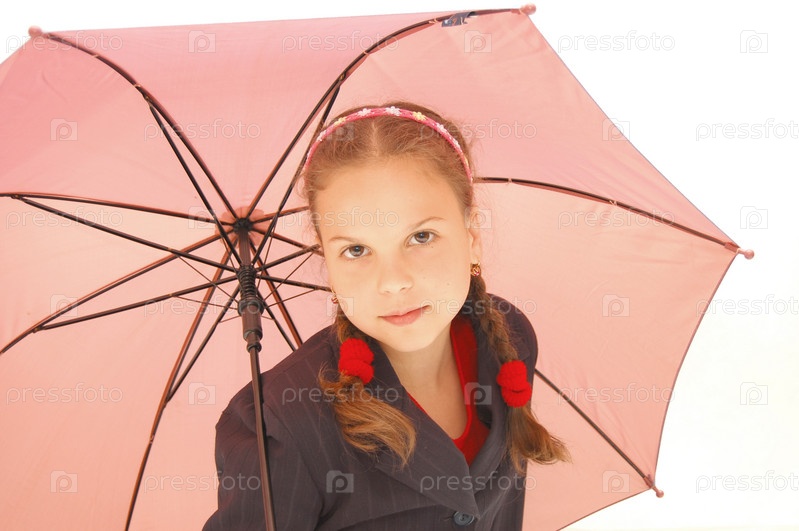 Девочка с зонтиком на белом фоне