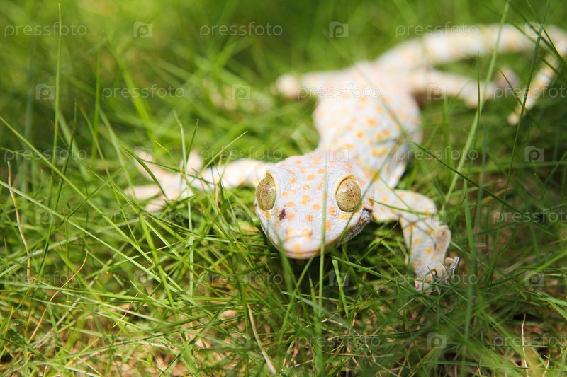 Токай геккон на зеленой траве
