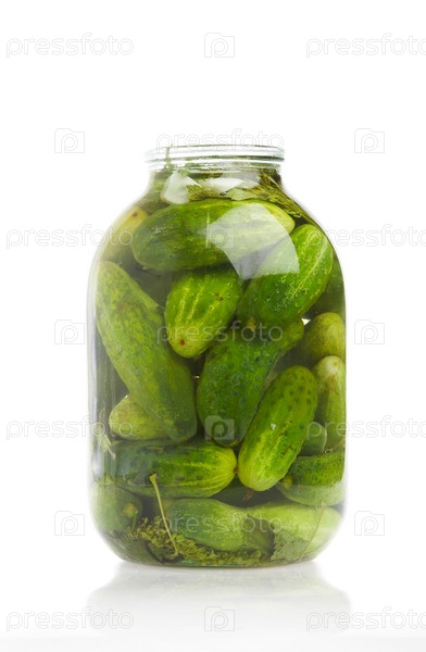 Стеклянная банка с консервированными огурцами