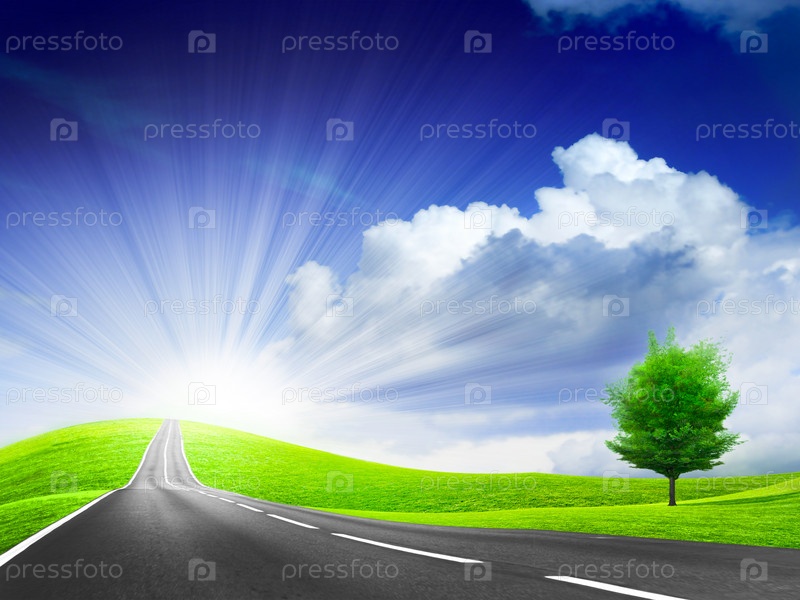 Пейзаж с дорогой и деревом