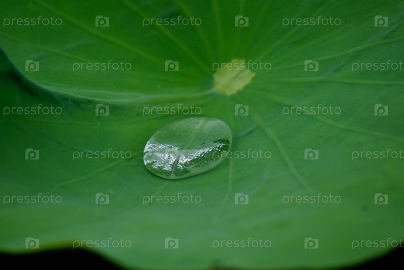 Водная капля на зеленом листе кувшинки