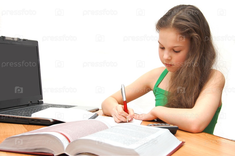 Девочка-подросток делает уроки
