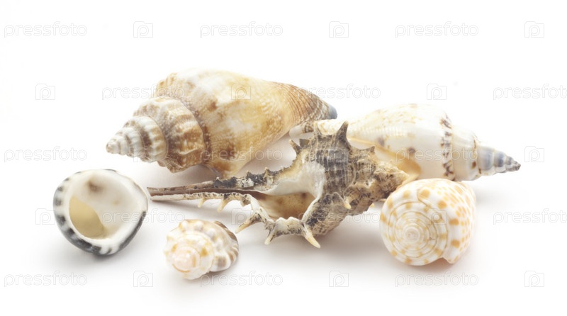 Морские ракушки на белом фоне