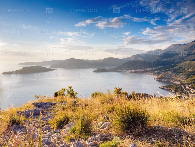 Вид с горы на острове Свети-Стефан в Черногории
