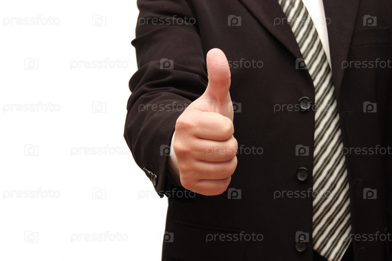Мужчина показывает большой палец вверх на белом фоне