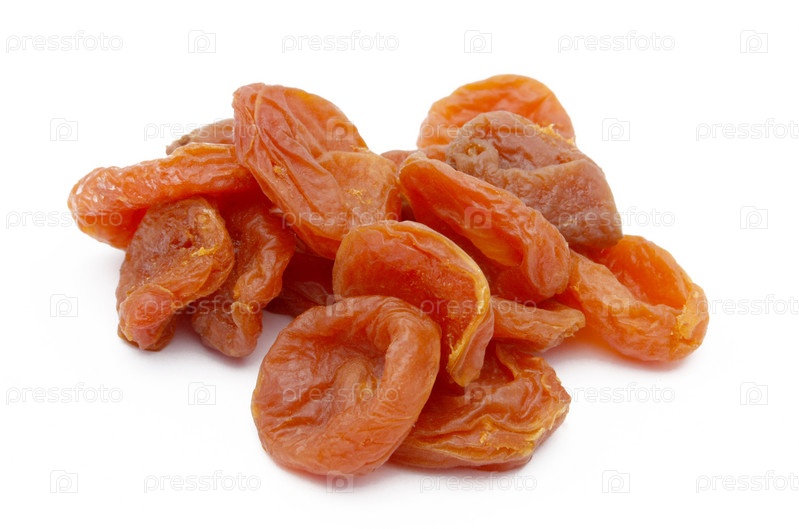 Горсть кураги на белом фоне