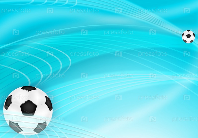 Футбольные мячи на голубом абстрактном фоне