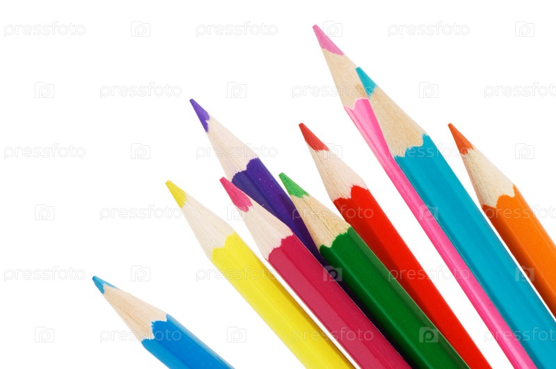 Цветные детские карандаши на белом фоне