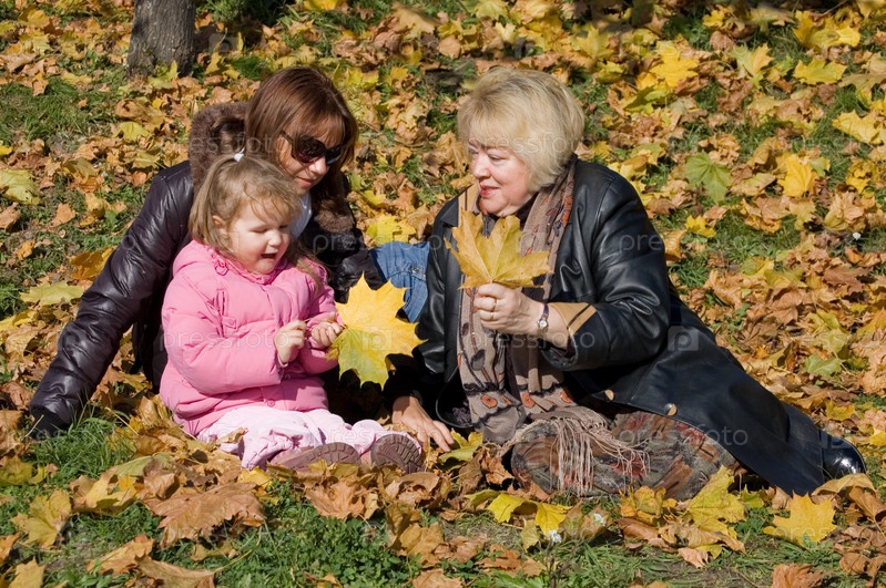 Счастливая семья в осеннем парке
