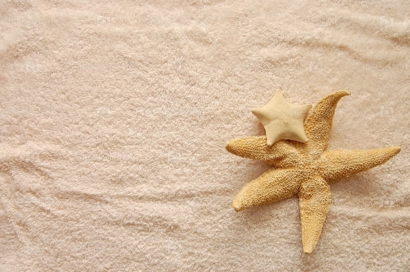 Две морские звезды, лежащие на пляжном полотенце