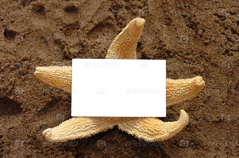 Морская звезда с листом бумаги, лежащая на мокром песке