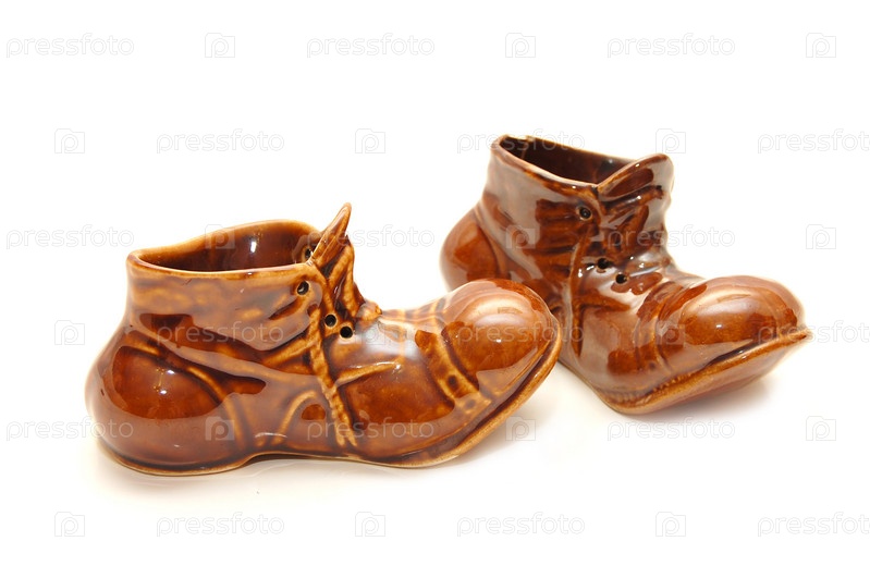 Сувенирные керамические ботинки на белом фоне