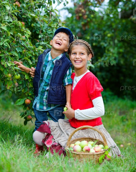 Милый мальчик в яблоневом саду