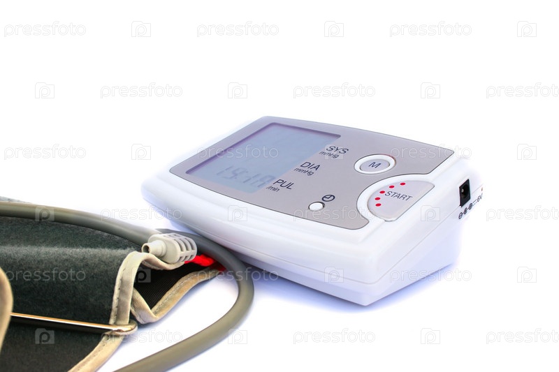 Современный цифровой тонометр, изолированный на белом фоне
