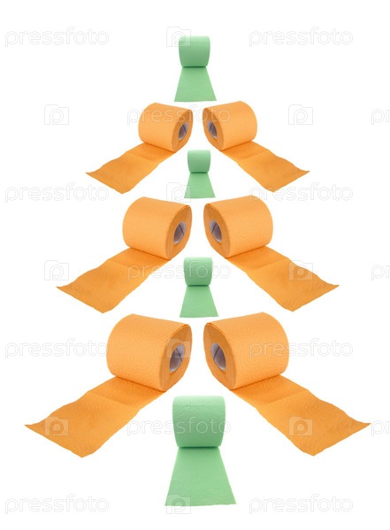Ель из рулонов туалетной бумаги, изолированная на белом фоне