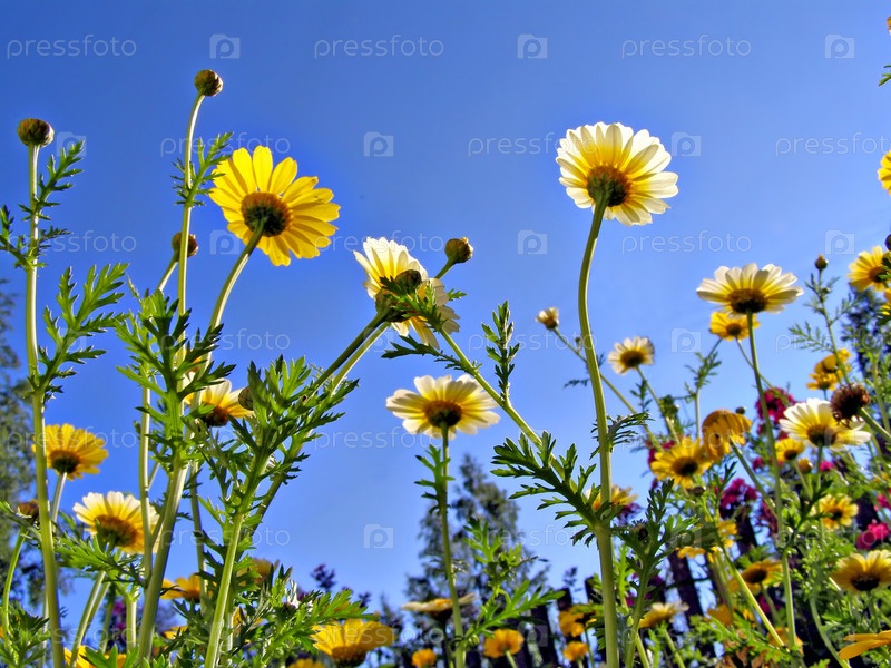 Хризантемы на фоне голубого неба