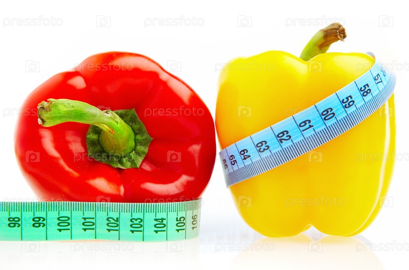 Перец и сантиметровые ленты на белом фоне