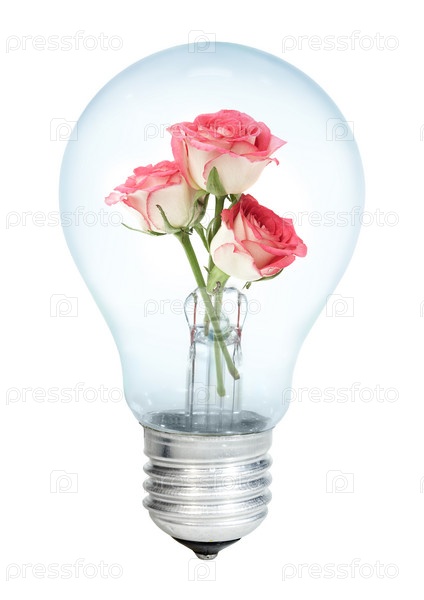 Розы в лампочке, белый фон