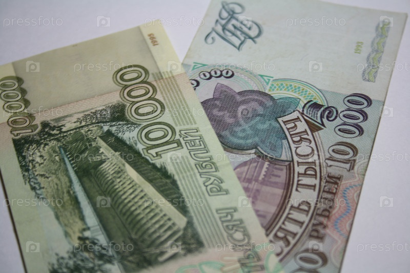 Две денежные купюры по десять тысяч рублей