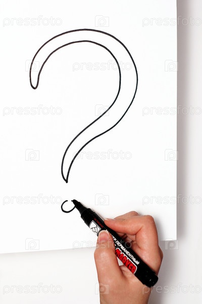 Рука рисует маркером вопросительный знак на листе