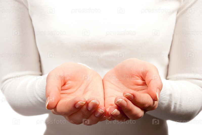 Женские руки, сложенные вместе, крупным планом на белом фоне