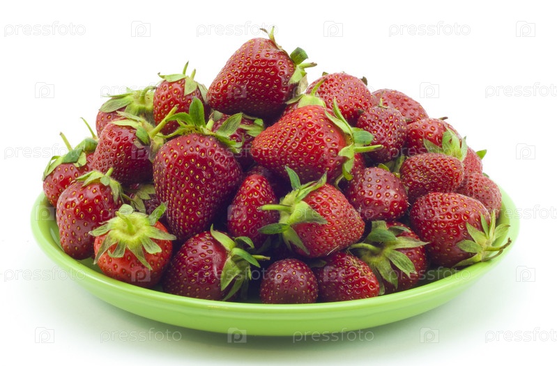 Красная клубника на зеленом блюдце