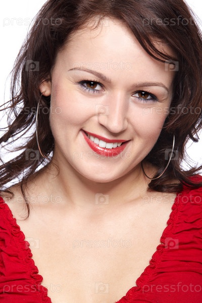Портрет красивой молодой девушки в красном топике