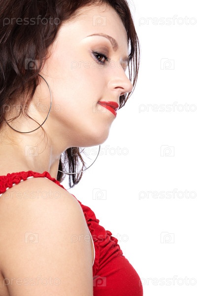 Портрет красивой молодой девушки в красном топике