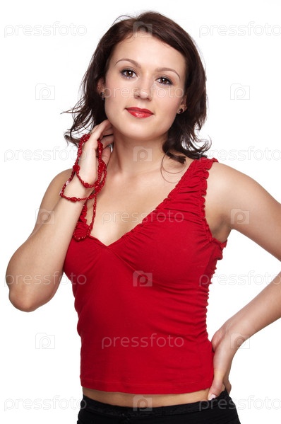 Красивая молодая девушка с красными бусами