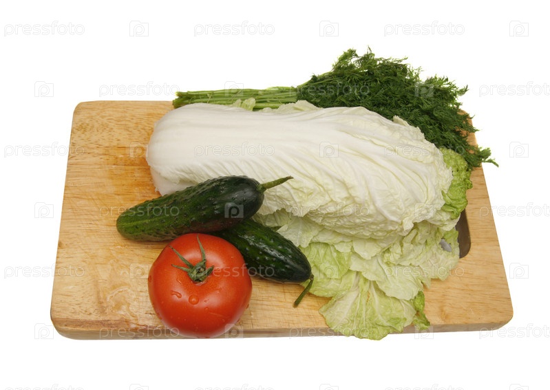 Свежие овощи на разделочной доске на белом фоне