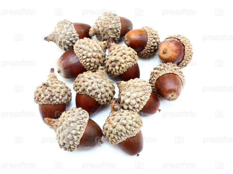 Желуди на белом фоне