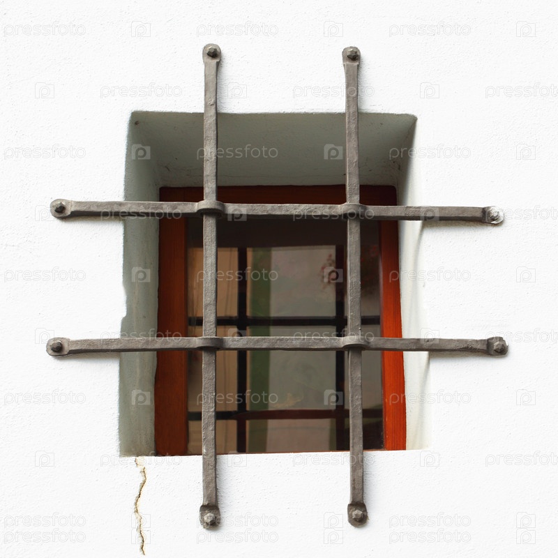 Старое окно с металлической решеткой