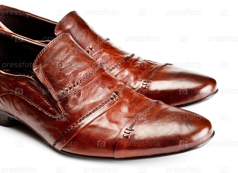 Коричневые кожаные ботинки на белом фоне