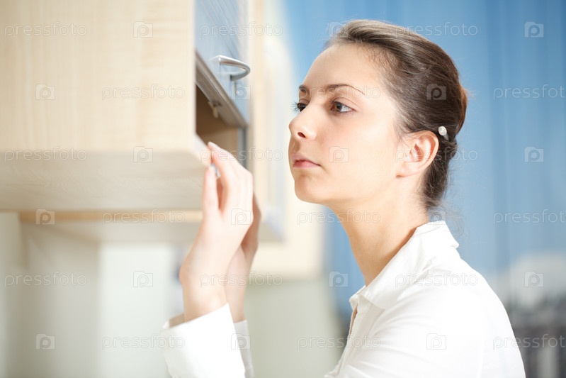 Женщина ищет документы на полке