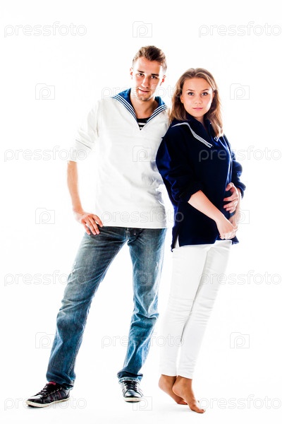 Молодой моряк с красивой молодой женщиной