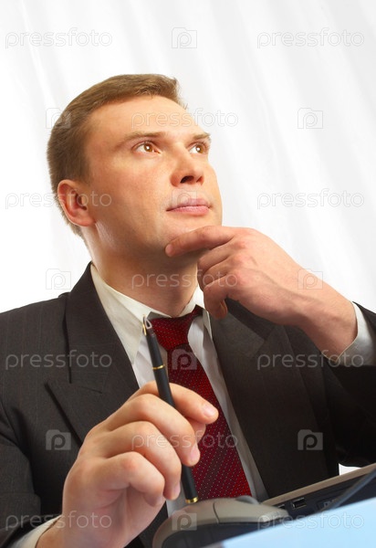 Размышляющий бизнесмен в костюме