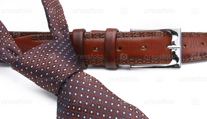 Галстук и ремень на белом фоне