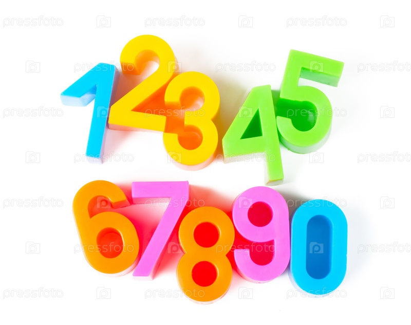 Концепция образования: яркие цифры от 0 до 9 на белом фоне