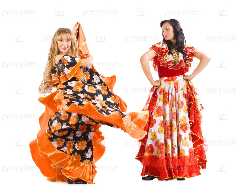 Две женщины танцуют в цыганских костюмах