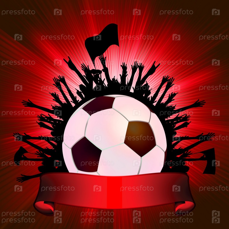 Футбольный мяч и руки ликующих фанатов, вектор