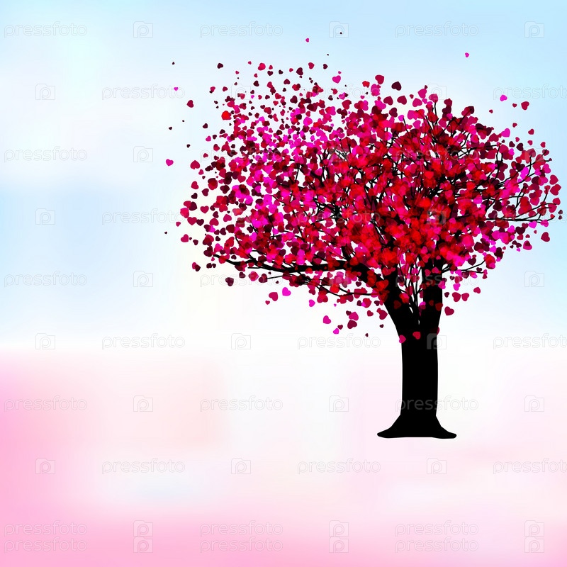 Дерево с листьями в виде сердец на светлом фоне