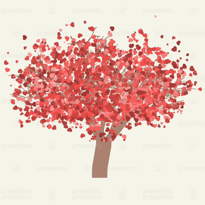 Дерево с листьями в виде сердец на желтом фоне